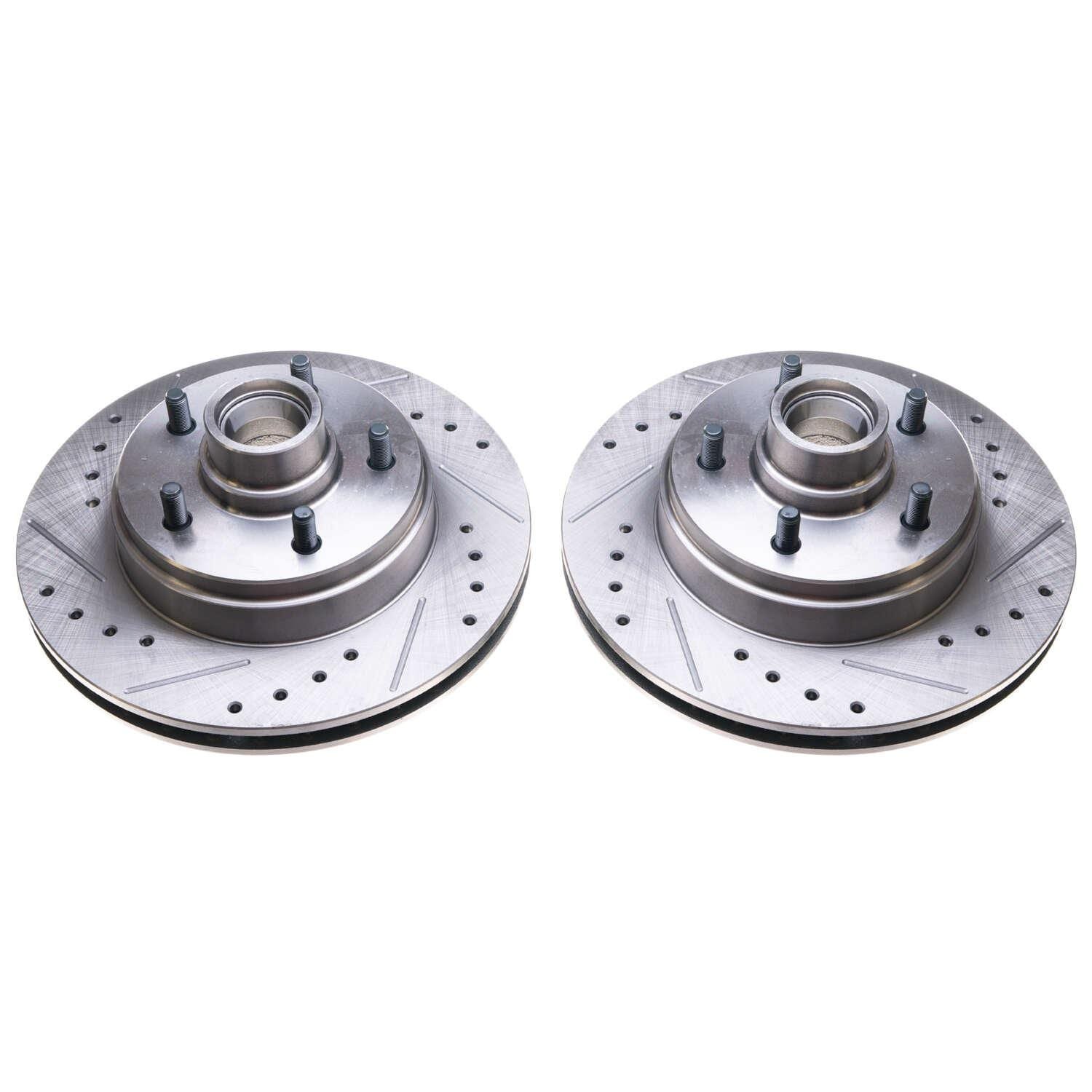 Power Stop drilled and slotted rotors provide a bolt-on upgrade for improved brake cooling and performance. Precision cross-drilled for maximum cooling and maximum performance during extreme conditions; rounded slots sweep away gasses, dust, and moisture to keep a clean friction contact patch on the rotor surface. With a direct OE fit, there are no special modifications needed.