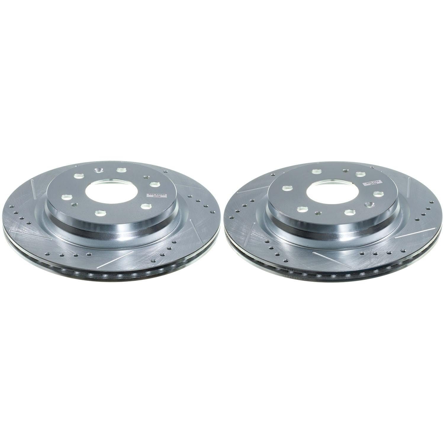 Power Stop drilled and slotted rotors provide a bolt-on upgrade for improved brake cooling and performance. Precision cross-drilled for maximum cooling and maximum performance during extreme conditions; rounded slots sweep away gasses, dust, and moisture to keep a clean friction contact patch on the rotor surface. Silver zinc dichromate plating resists rust and corrosion. With a direct OE fit, there are no special modifications needed.