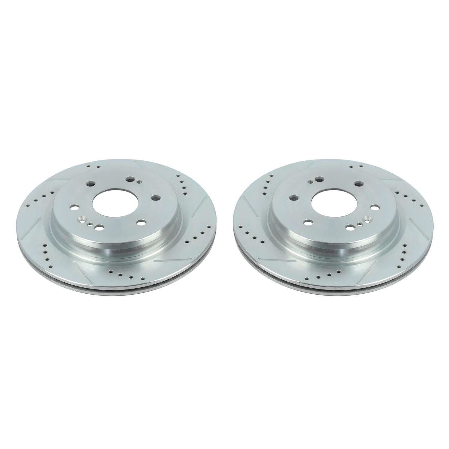 Power Stop drilled and slotted rotors provide a bolt-on upgrade for improved brake cooling and performance. Precision cross-drilled for maximum cooling and maximum performance during extreme conditions; rounded slots sweep away gasses, dust, and moisture to keep a clean friction contact patch on the rotor surface. Silver zinc dichromate plating resists rust and corrosion. With a direct OE fit, there are no special modifications needed.