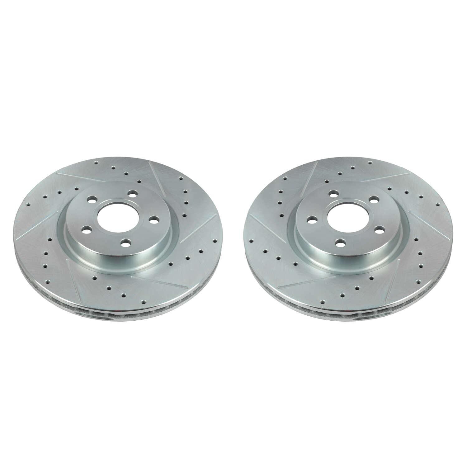 Power Stop drilled and slotted rotors provide a bolt-on upgrade for improved brake cooling and performance. Precision cross-drilled for maximum cooling and maximum performance during extreme conditions; rounded slots sweep away gasses, dust, and moisture to keep a clean friction contact patch on the rotor surface. Silver zinc dichromate plating resists rust and corrosion. With a direct OE fit, there are no special modifications needed.