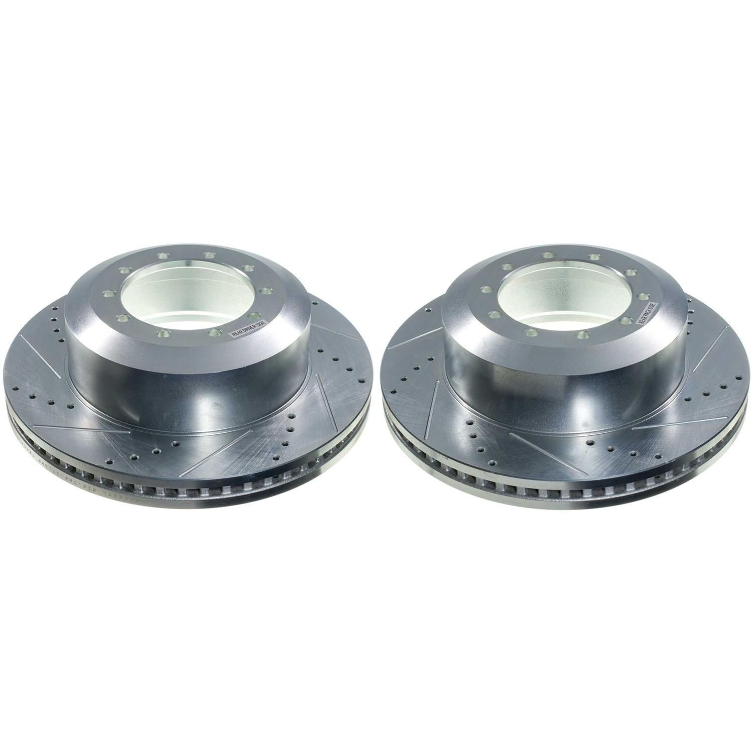 Power Stop drilled and slotted rotors provide a bolt-on upgrade for improved brake cooling and performance. Precision cross-drilled for maximum cooling and maximum performance during extreme conditions; rounded slots sweep away gasses, dust, and moisture to keep a clean friction contact patch on the rotor surface. Silver zinc dichromate plating resists rust and corrosion. With a direct OE fit, there are no special modifications needed.