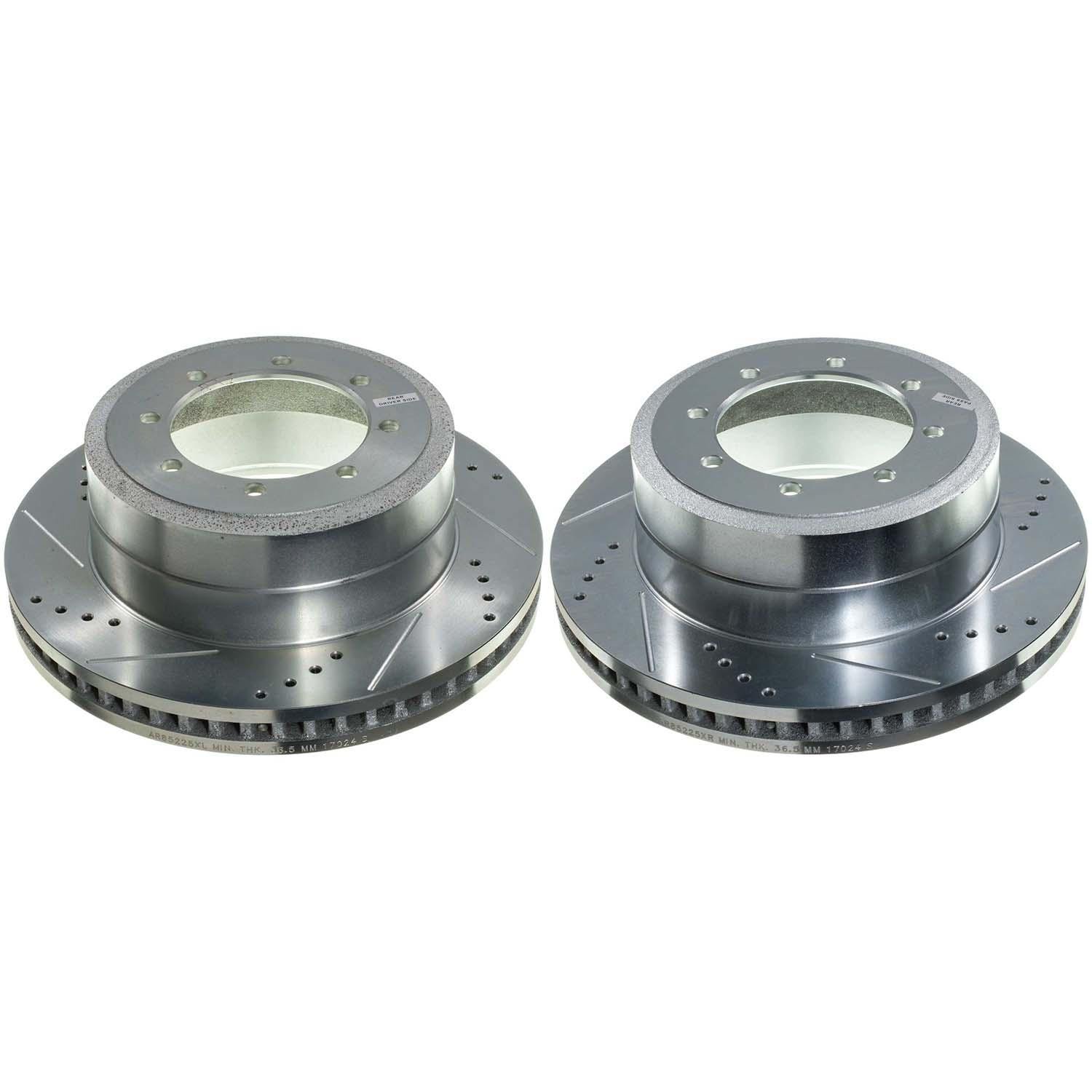 Power Stop drilled and slotted rotors provide a bolt-on upgrade for improved brake cooling and performance. Precision cross-drilled for maximum cooling and maximum performance during extreme conditions; rounded slots sweep away gasses, dust, and moisture to keep a clean friction contact patch on the rotor surface. Silver zinc dichromate plating resists rust and corrosion. With a direct OE fit, there are no special modifications needed.
