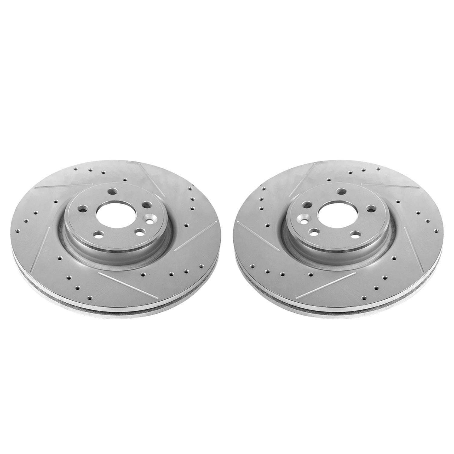 Power Stop drilled and slotted rotors provide a bolt-on upgrade for improved brake cooling and performance. Precision cross-drilled for maximum cooling and maximum performance during extreme conditions; rounded slots sweep away gasses, dust, and moisture to keep a clean friction contact patch on the rotor surface. Silver zinc dichromate plating resists rust and corrosion. With a direct OE fit, there are no special modifications needed.