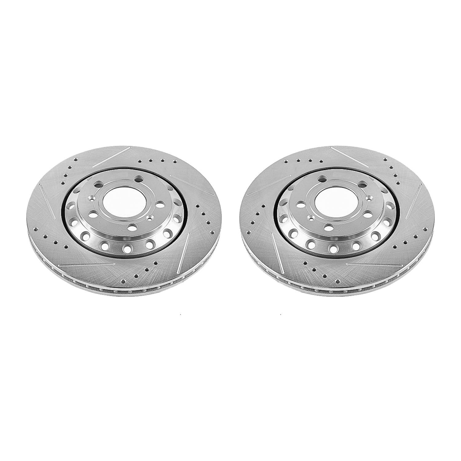 Power Stop drilled and slotted rotors provide a bolt-on upgrade for improved brake cooling and performance. Precision cross-drilled for maximum cooling and maximum performance during extreme conditions; rounded slots sweep away gasses, dust, and moisture to keep a clean friction contact patch on the rotor surface. Silver zinc dichromate plating resists rust and corrosion. With a direct OE fit, there are no special modifications needed.