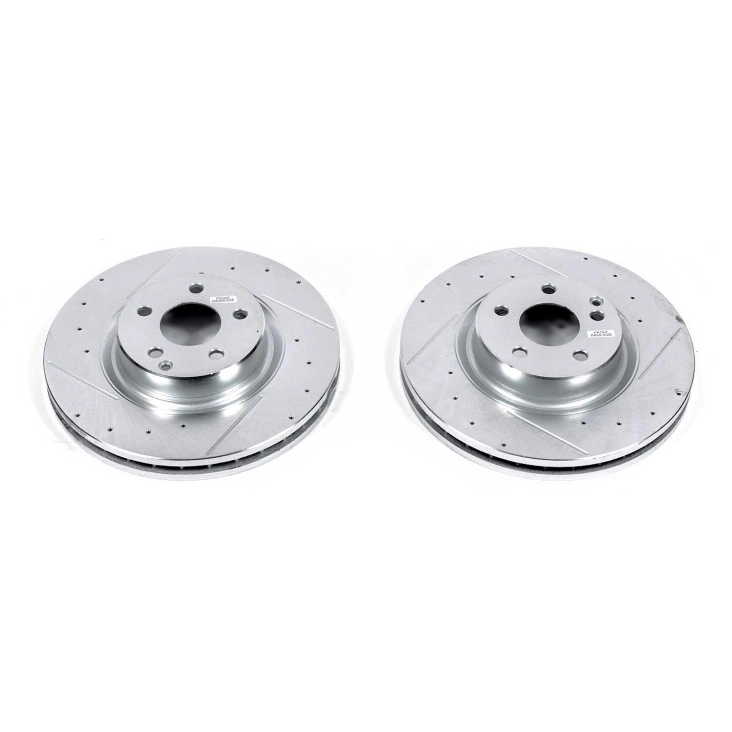 Power Stop drilled and slotted rotors provide a bolt-on upgrade for improved brake cooling and performance. Precision cross-drilled for maximum cooling and maximum performance during extreme conditions; rounded slots sweep away gasses, dust, and moisture to keep a clean friction contact patch on the rotor surface. Silver zinc dichromate plating resists rust and corrosion. With a direct OE fit, there are no special modifications needed.