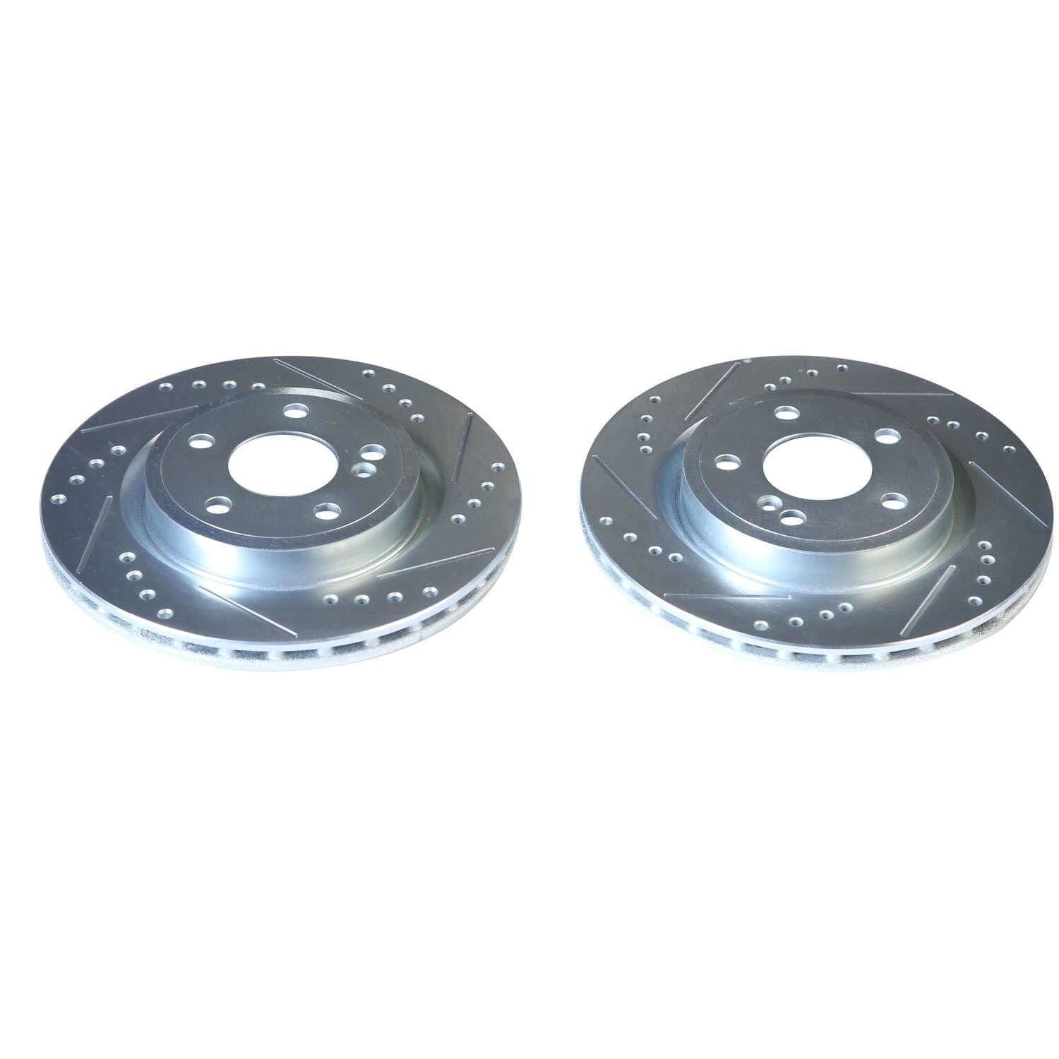 Power Stop drilled and slotted rotors provide a bolt-on upgrade for improved brake cooling and performance. Precision cross-drilled for maximum cooling and maximum performance during extreme conditions; rounded slots sweep away gasses, dust, and moisture to keep a clean friction contact patch on the rotor surface. Silver zinc dichromate plating resists rust and corrosion. With a direct OE fit, there are no special modifications needed.
