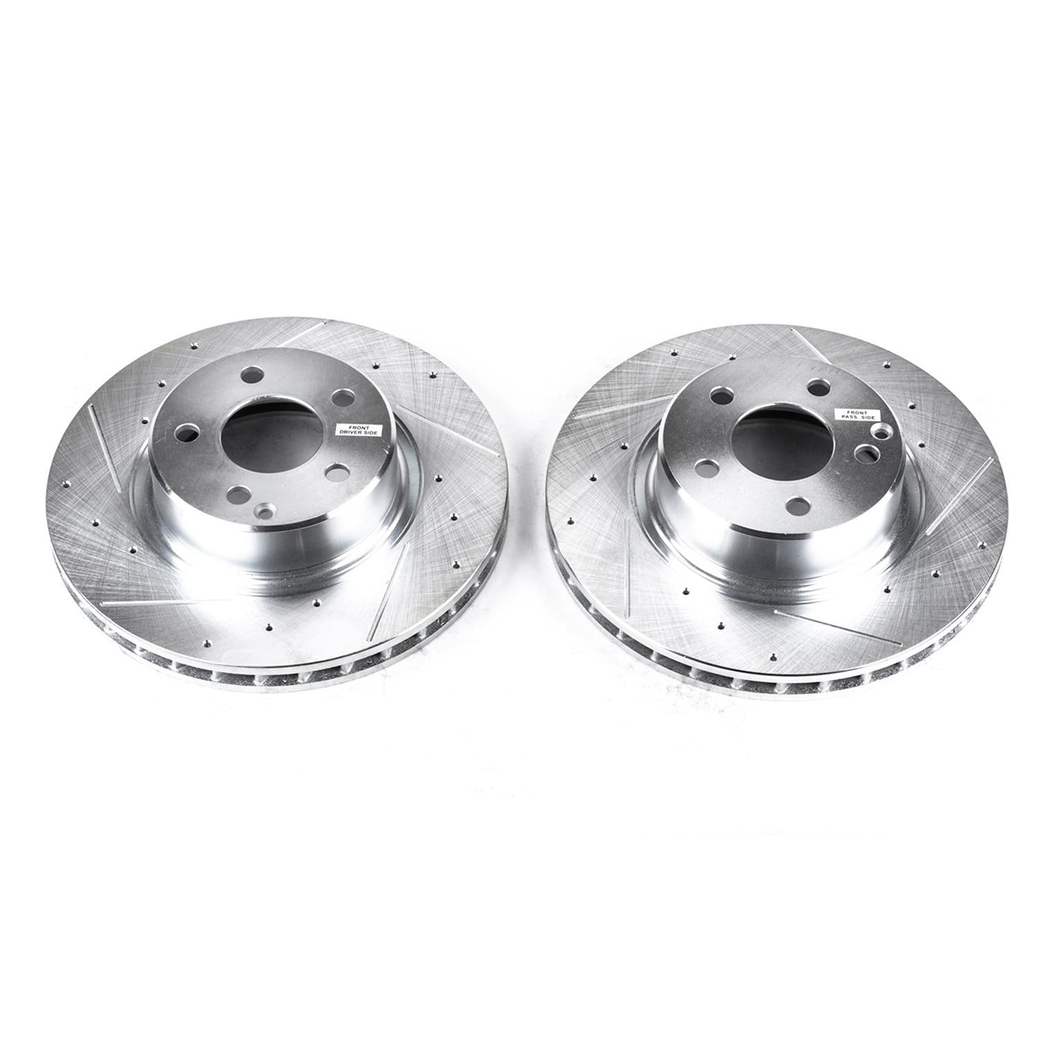 Power Stop drilled and slotted rotors provide a bolt-on upgrade for improved brake cooling and performance. Precision cross-drilled for maximum cooling and maximum performance during extreme conditions; rounded slots sweep away gasses, dust, and moisture to keep a clean friction contact patch on the rotor surface. Silver zinc dichromate plating resists rust and corrosion. With a direct OE fit, there are no special modifications needed.