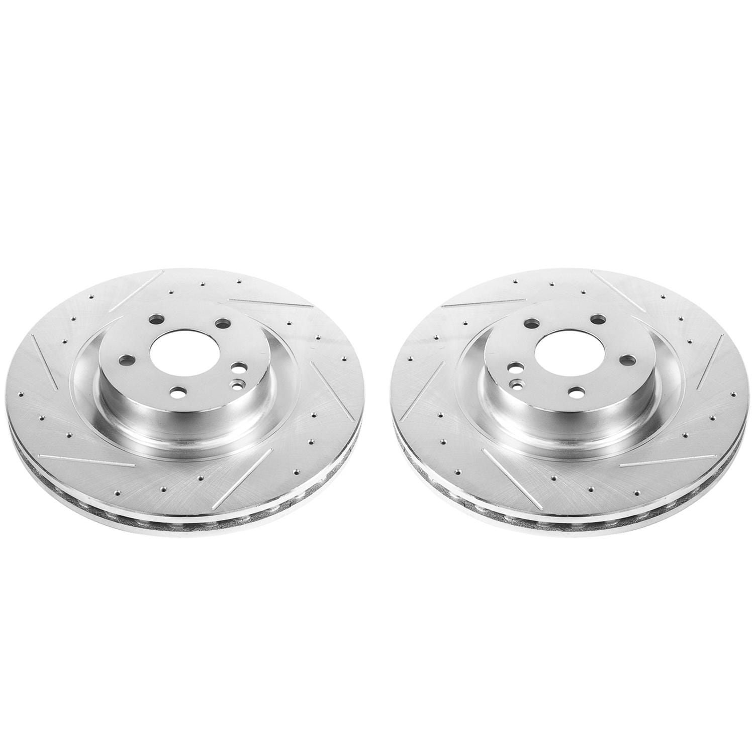 Power Stop drilled and slotted rotors provide a bolt-on upgrade for improved brake cooling and performance. Precision cross-drilled for maximum cooling and maximum performance during extreme conditions; rounded slots sweep away gasses, dust, and moisture to keep a clean friction contact patch on the rotor surface. Silver zinc dichromate plating resists rust and corrosion. With a direct OE fit, there are no special modifications needed.