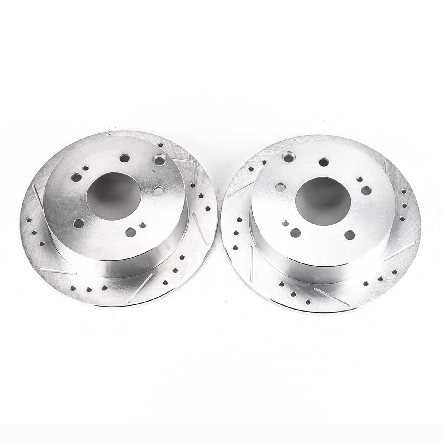 Power Stop drilled and slotted rotors provide a bolt-on upgrade for improved brake cooling and performance. Precision cross-drilled for maximum cooling and maximum performance during extreme conditions; rounded slots sweep away gasses, dust, and moisture to keep a clean friction contact patch on the rotor surface. Silver zinc dichromate plating resists rust and corrosion. With a direct OE fit, there are no special modifications needed.