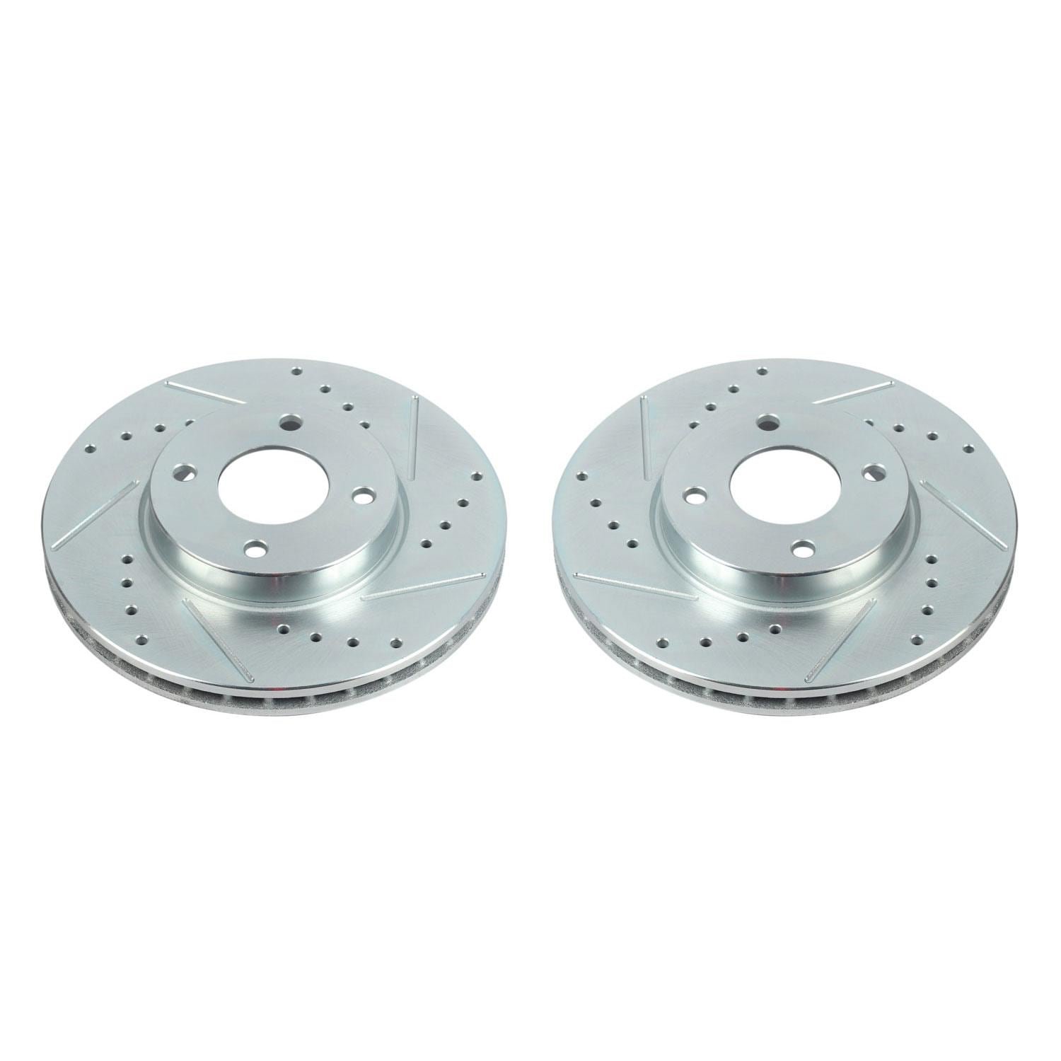 Power Stop drilled and slotted rotors provide a bolt-on upgrade for improved brake cooling and performance. Precision cross-drilled for maximum cooling and maximum performance during extreme conditions; rounded slots sweep away gasses, dust, and moisture to keep a clean friction contact patch on the rotor surface. Silver zinc dichromate plating resists rust and corrosion. With a direct OE fit, there are no special modifications needed.