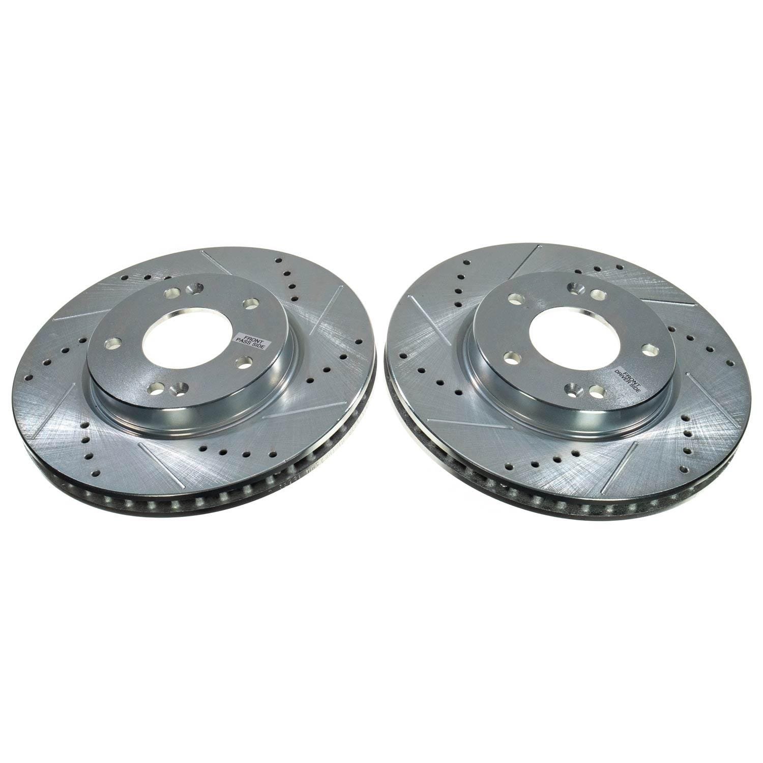 Power Stop drilled and slotted rotors provide a bolt-on upgrade for improved brake cooling and performance. Precision cross-drilled for maximum cooling and maximum performance during extreme conditions; rounded slots sweep away gasses, dust, and moisture to keep a clean friction contact patch on the rotor surface. Silver zinc dichromate plating resists rust and corrosion. With a direct OE fit, there are no special modifications needed.