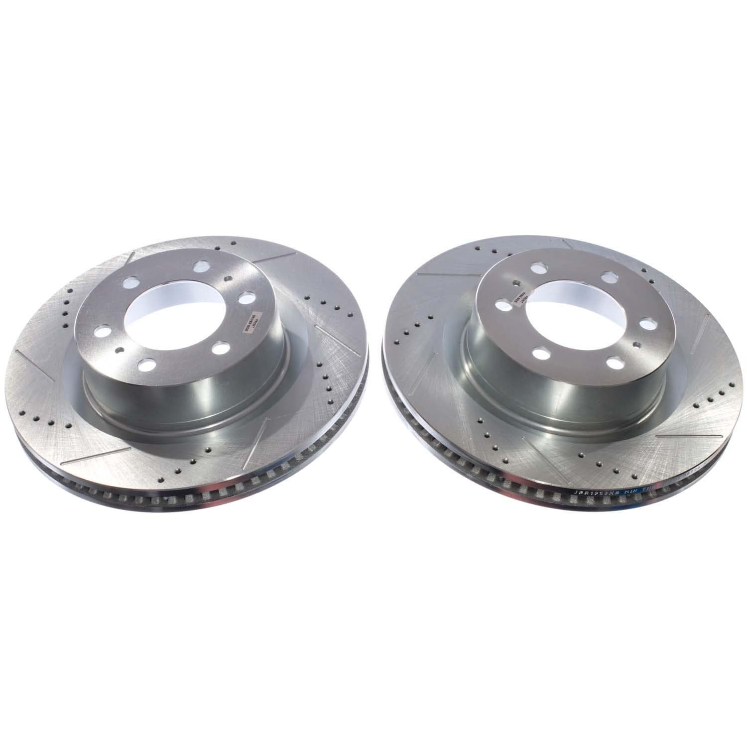 Power Stop drilled and slotted rotors provide a bolt-on upgrade for improved brake cooling and performance. Precision cross-drilled for maximum cooling and maximum performance during extreme conditions; rounded slots sweep away gasses, dust, and moisture to keep a clean friction contact patch on the rotor surface. Silver zinc dichromate plating resists rust and corrosion. With a direct OE fit, there are no special modifications needed.
