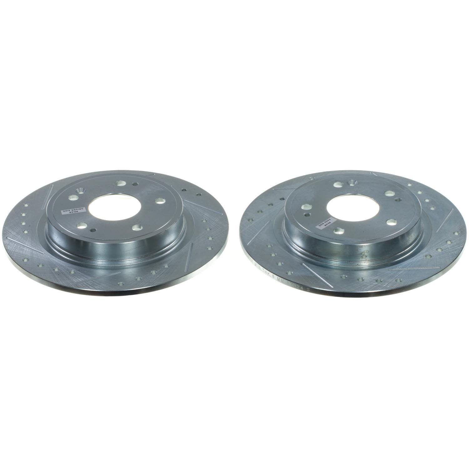 Power Stop drilled and slotted rotors provide a bolt-on upgrade for improved brake cooling and performance. Precision cross-drilled for maximum cooling and maximum performance during extreme conditions; rounded slots sweep away gasses, dust, and moisture to keep a clean friction contact patch on the rotor surface. Silver zinc dichromate plating resists rust and corrosion. With a direct OE fit, there are no special modifications needed.