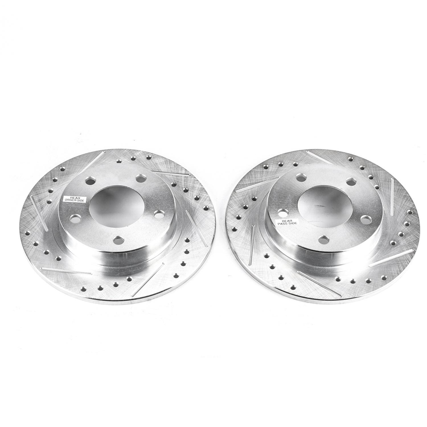 Power Stop drilled and slotted rotors provide a bolt-on upgrade for improved brake cooling and performance. Precision cross-drilled for maximum cooling and maximum performance during extreme conditions; rounded slots sweep away gasses, dust, and moisture to keep a clean friction contact patch on the rotor surface. Silver zinc dichromate plating resists rust and corrosion. With a direct OE fit, there are no special modifications needed.