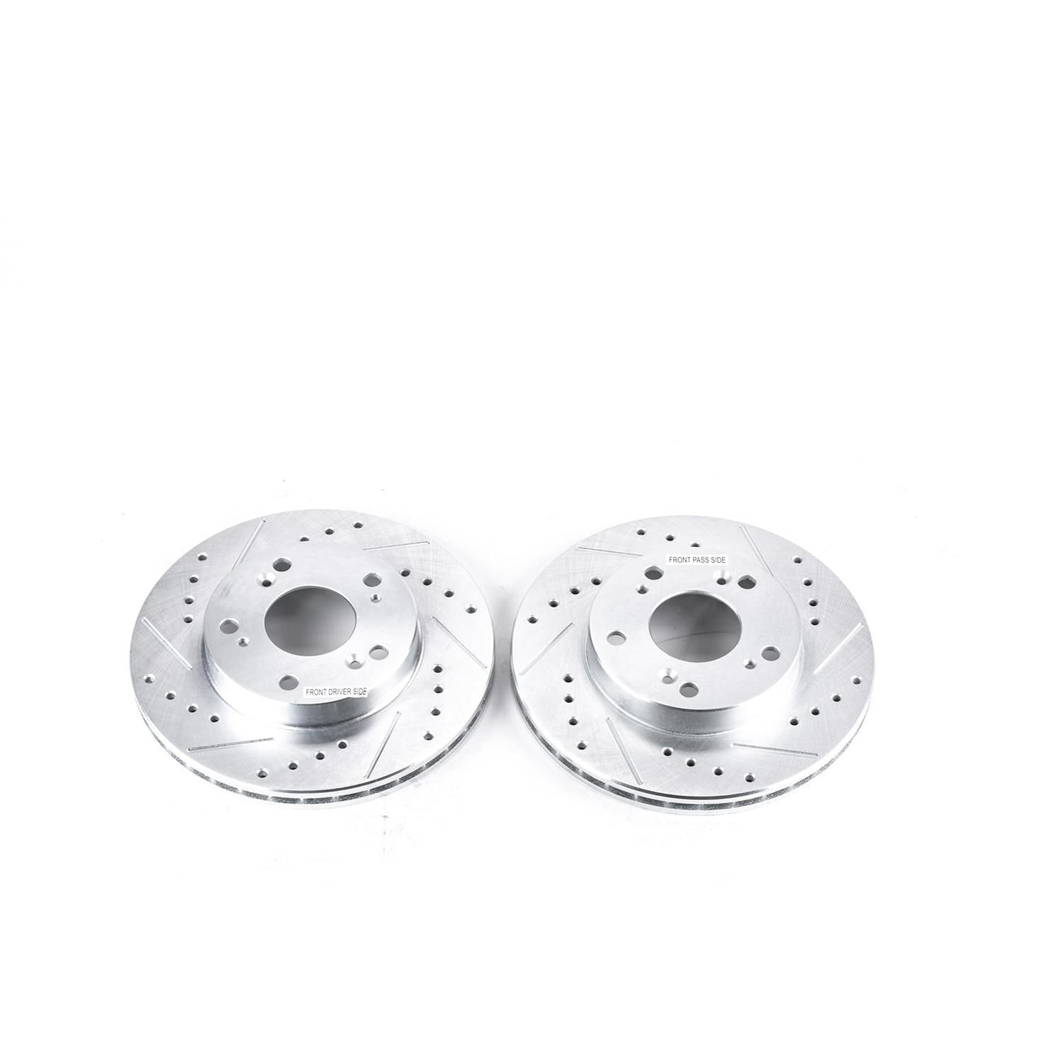 Power Stop drilled and slotted rotors provide a bolt-on upgrade for improved brake cooling and performance. Precision cross-drilled for maximum cooling and maximum performance during extreme conditions; rounded slots sweep away gasses, dust, and moisture to keep a clean friction contact patch on the rotor surface. Silver zinc dichromate plating resists rust and corrosion. With a direct OE fit, there are no special modifications needed.
